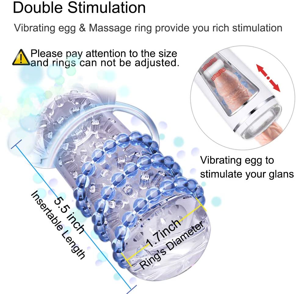 - Soft and transparent TPE sleeves, 3D particles strongly tease and rub your glans and penis.